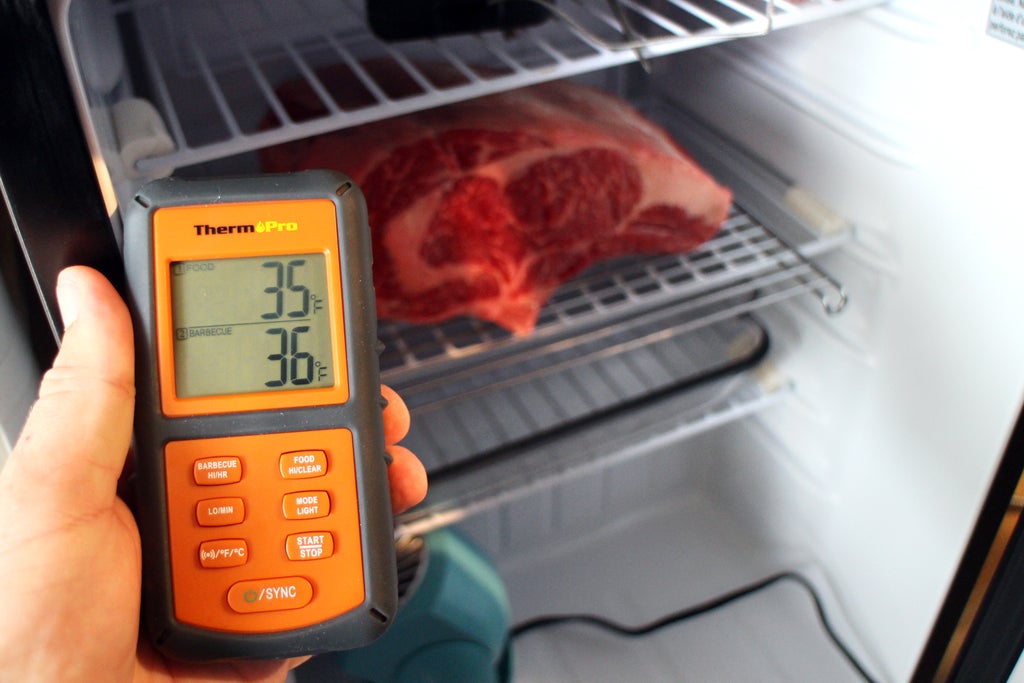 You might be tempted to forego getting a small secondary fridge, opting instead to just age the beef in your existing fridge that you use for everyday food. Don't do it! Invest in a second fridge.