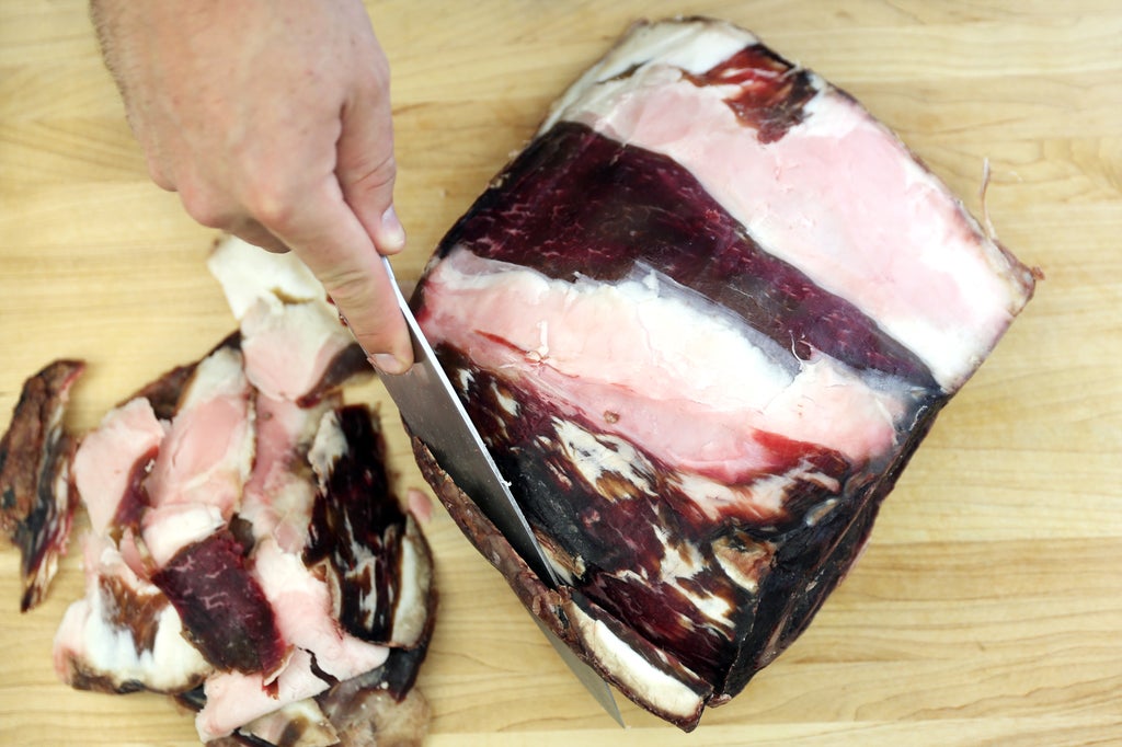 After trimming the hard crust and all dark areas of the beef that are unsuitable for eating, it's a good time to take a step back and examine your results.