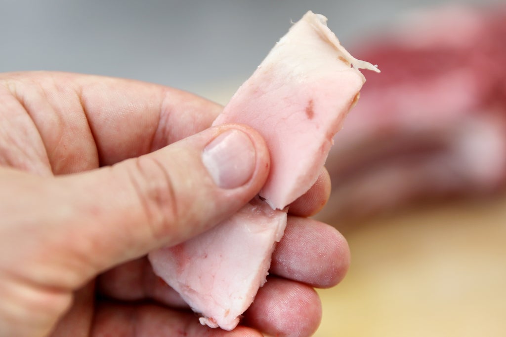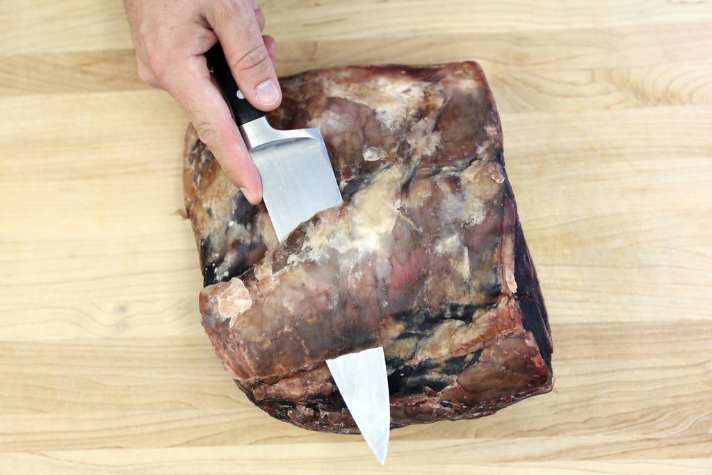 Now that you've got this funky slab of meat, it's time to trim off the gross exterior and reveal the pristine insides.